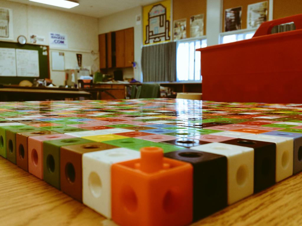 While actively building the squares I had a great idea to make the introduction to the activity a little more curious! So when I got back to my classroom I broke out the cubes and created this….